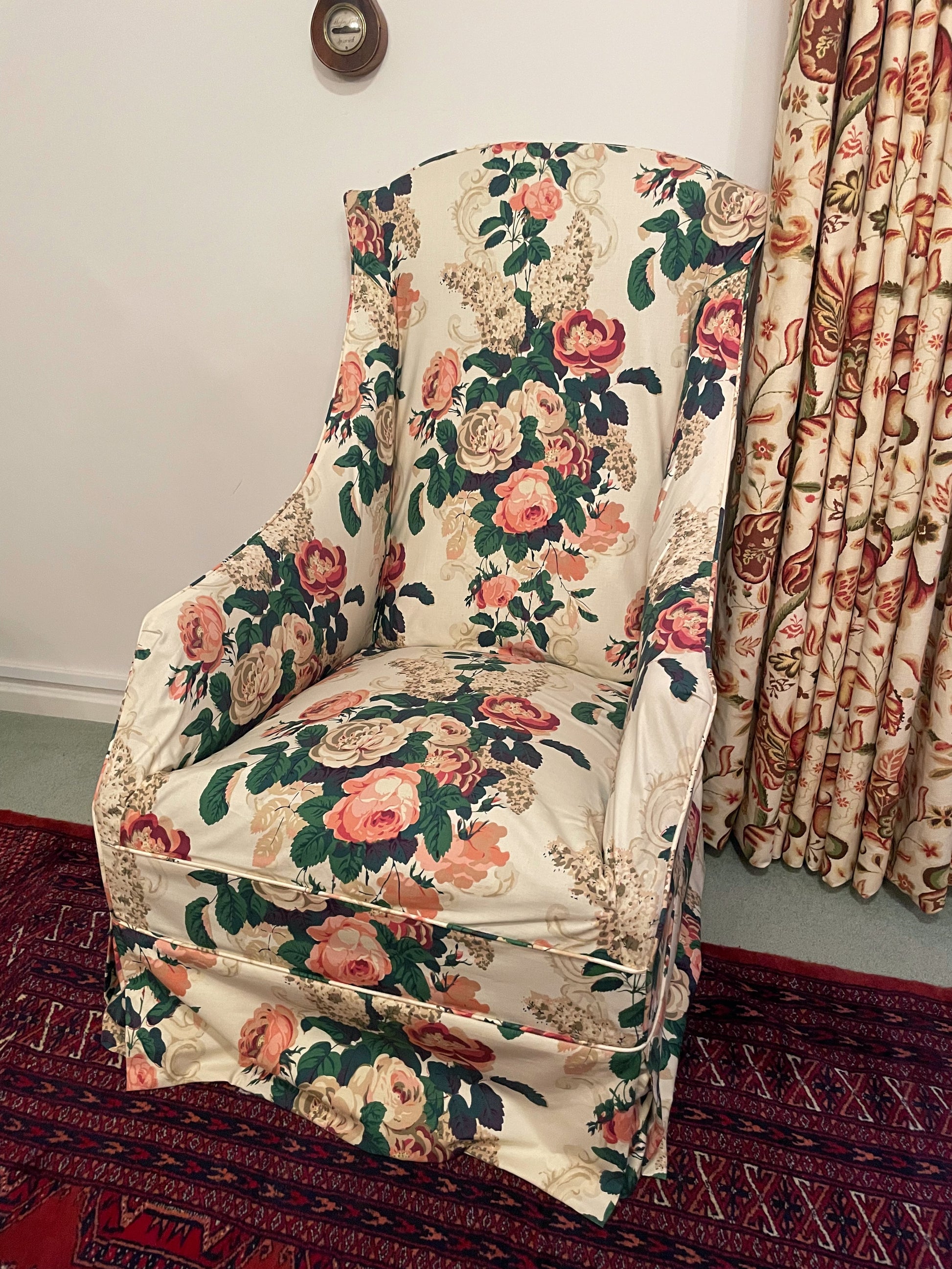 A very pretty Vintage Armchair with a loose cover in a Vintage GP&J Baker ‘Rossetti’ Chintz
