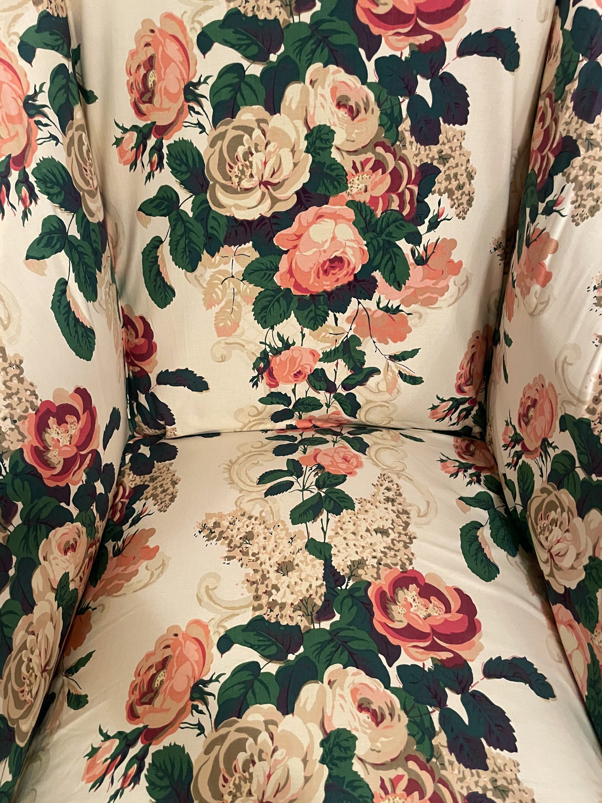 This is just a lovely fabric and would be the perfect bedroom chair!